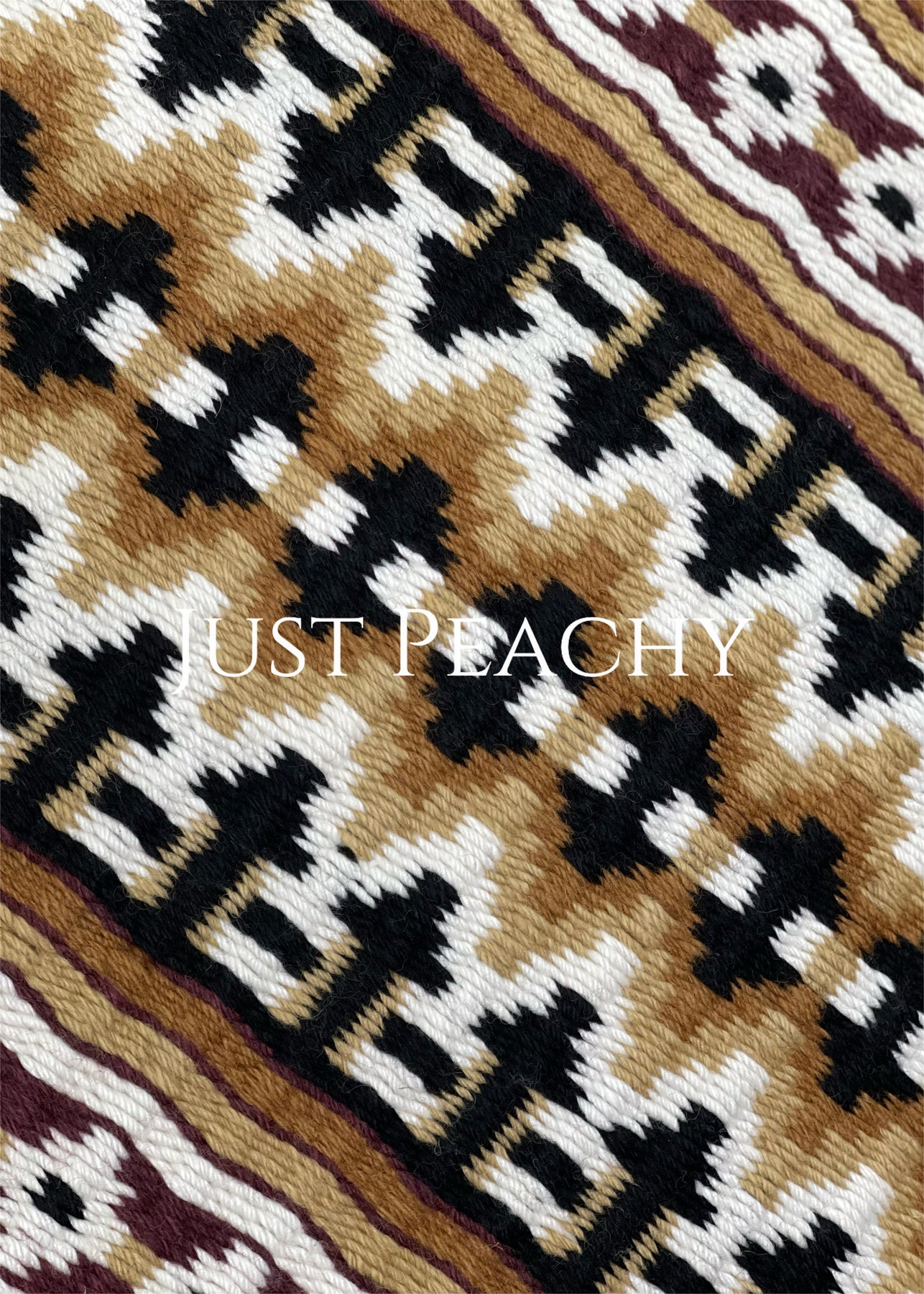 - Color palette in a burgundy base with accents in a range of tans, black and white