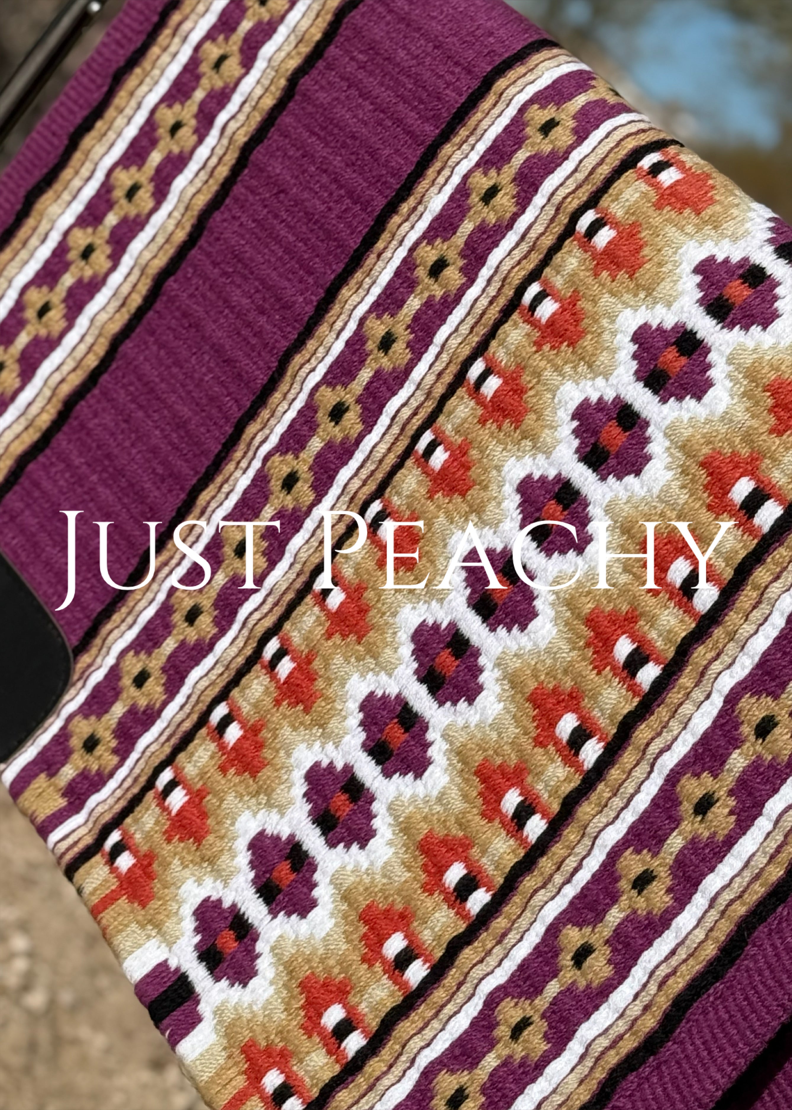Our Just Peachy Western Show Blankets are hand-woven in a fine gauge, premium New Zealand wool that offers a dense, tight weave with gorgeous drape. This is an exceptional quality show pad for the price point!